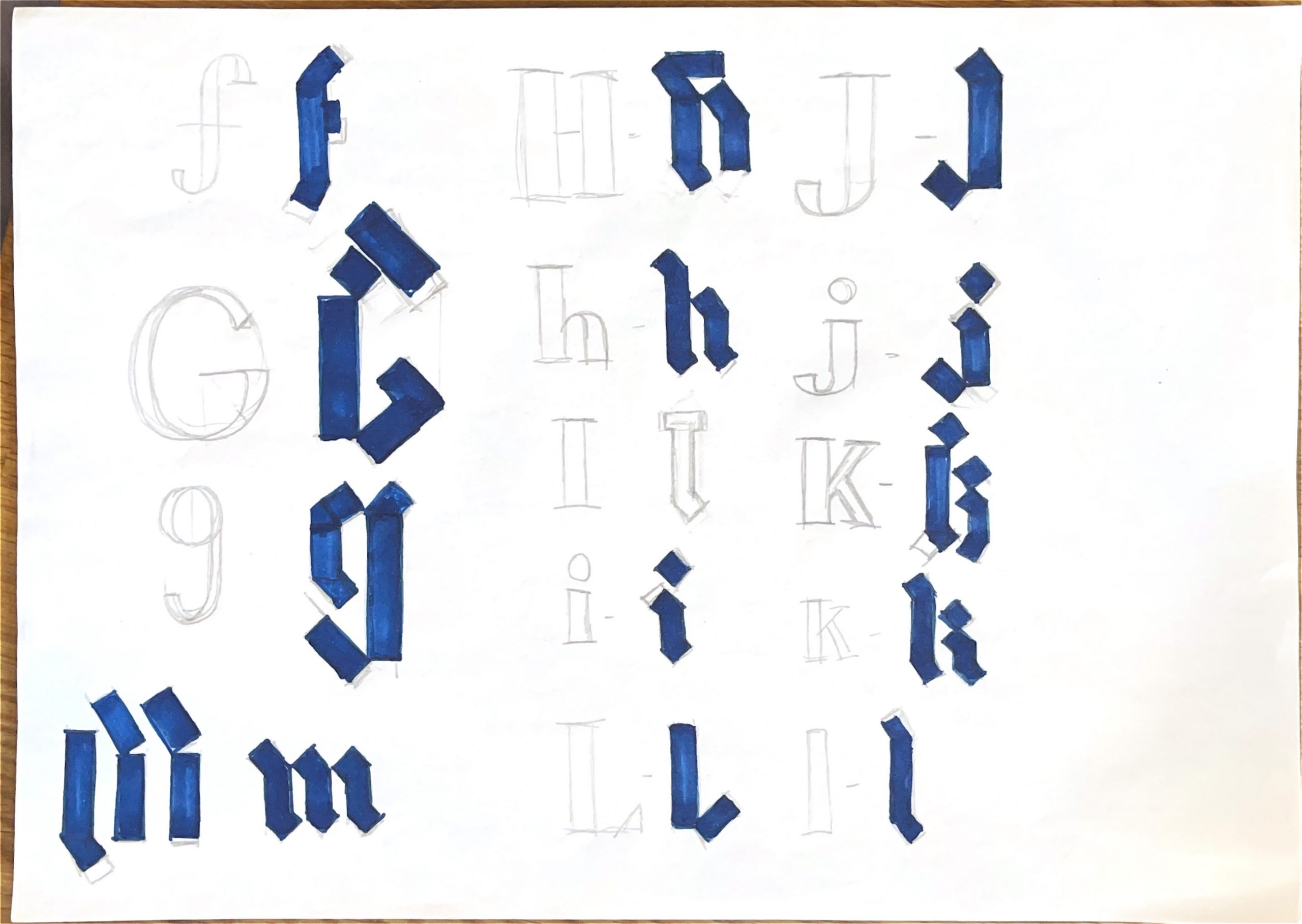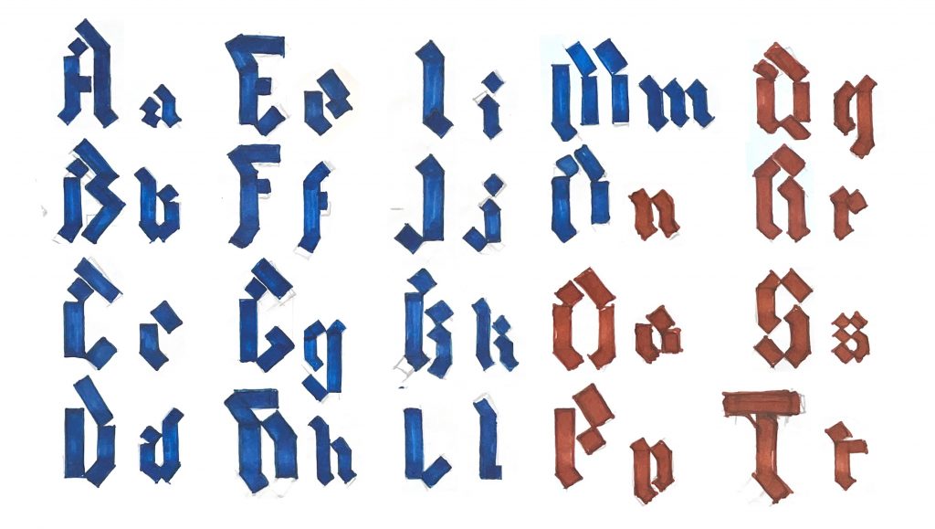 Diese Fraktur Schrift ist inspiriert von alten Fraktur Schriften – Ziel war es einen modernen und vereinfachten Look zu erstellen. Die Fraktur Schriftartfamilie ist teilweise behindert in der heutigen zeit die Lesbarkeit – aus diesem Grund habe ich versucht so wenig Formen wie möglich zu verwenden.