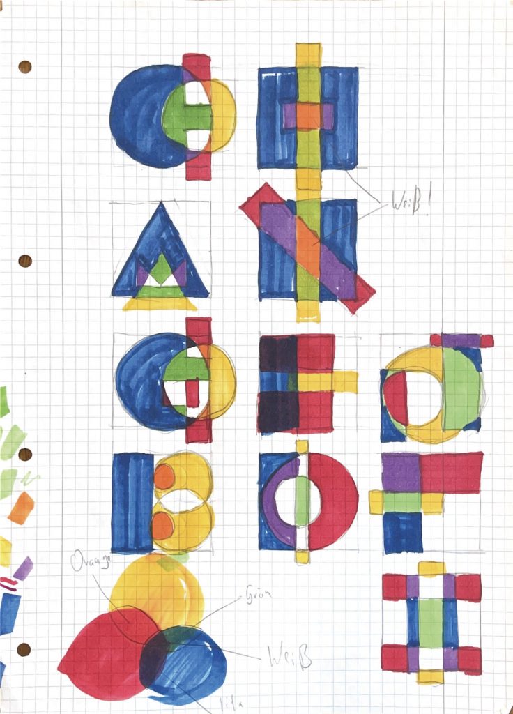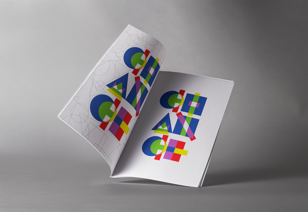 Diese typografische Ausarbeitung beschränkt sich nur auf die drei Grundformen (Quadrat, Kreis & Dreieck) sowie 3 Grundfarben (Rot, Blau, Gelb). Jede Form bekommt eine Grundfarbe und die Überlappung dieser Formen resultiert in der Farbe Weiß (Additives Farbsystem). Diese Typografische Ausarbeitung habe ich als künstlerische Einreichung bei einem Magazin entwickelt.