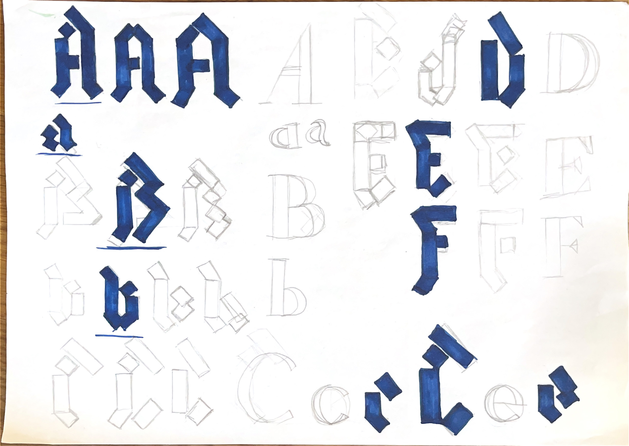 Hier werden ein paar Typografie Arbeiten gezeigt. Hauptsächlich Skizzen, jedoch auch Digitalisierte Inhalte.